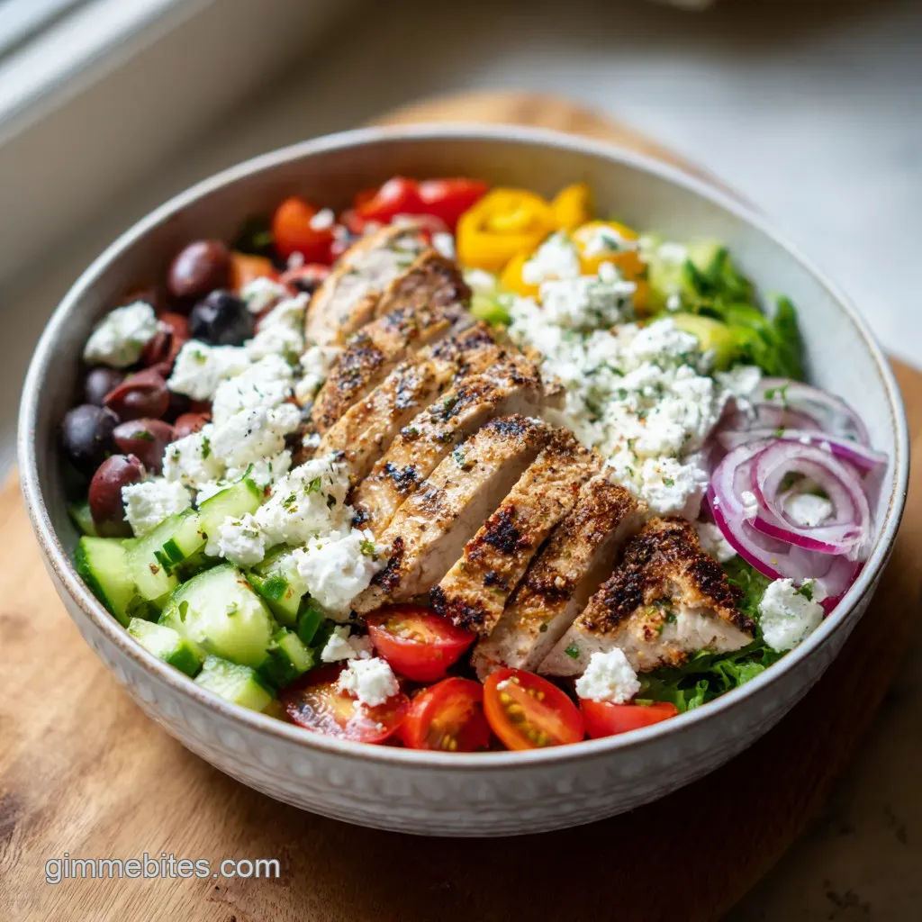 - Top with the warm chicken strips, a sprinkle of crumbled feta, and a dollop of hummus.