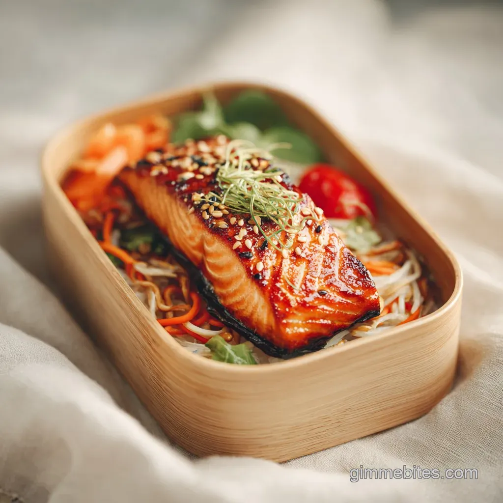 Teriyaki Salmon Bento Box: Pan-Seared and Caramelized